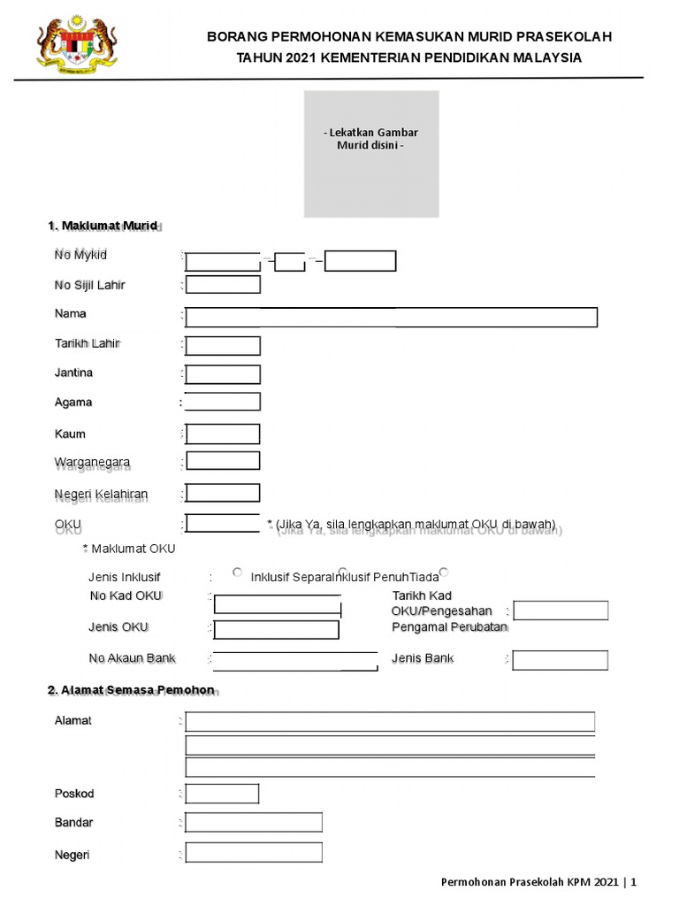 Borang Permohonan Kemasukan Prasekolah 2021 Otosection